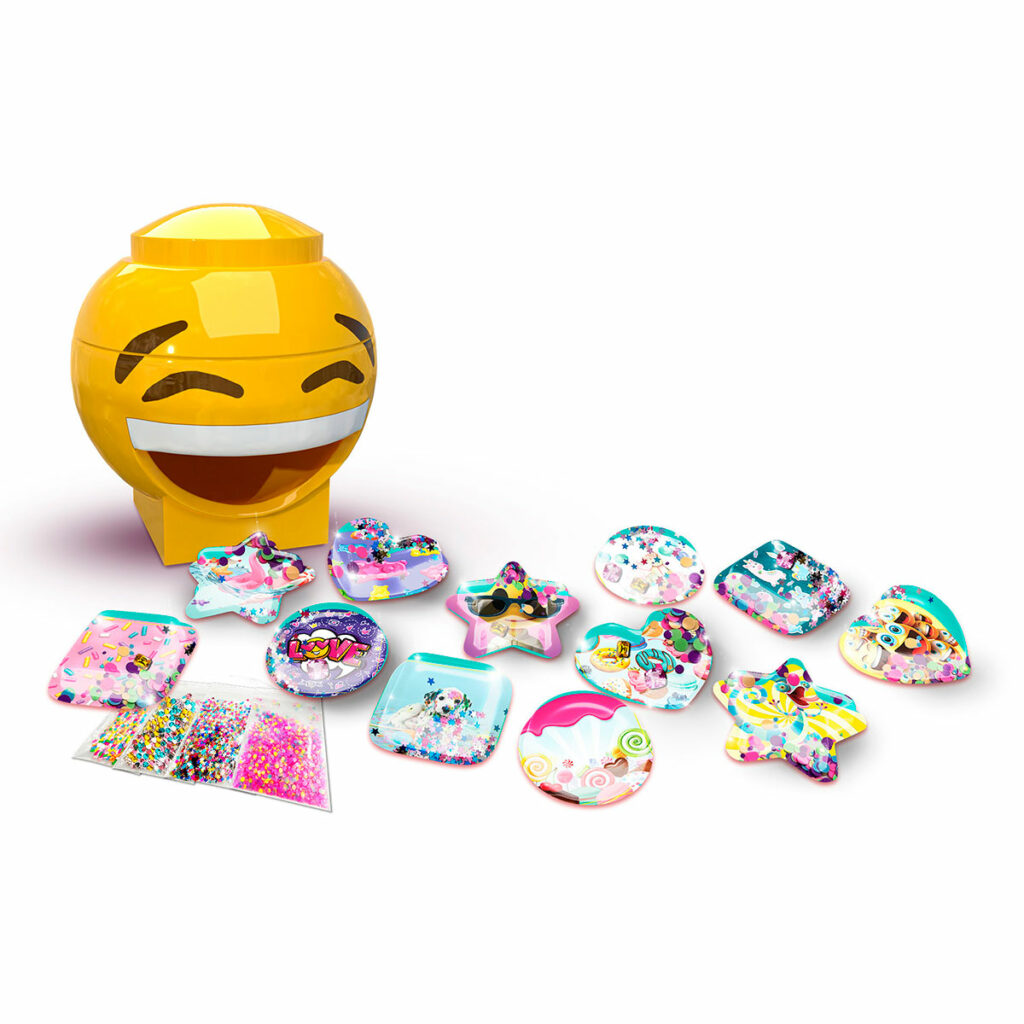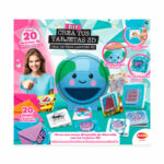 1 máquina crea tarjetas, 20 tarjetas, 20 fondos de tarjetas, 20 blisters de tarjetas, 20 mini sobres, 20 pegatinas para sobres, 3 bolsas de rellenos diferentes, 1 bolsa de 150 gemas e instrucciones