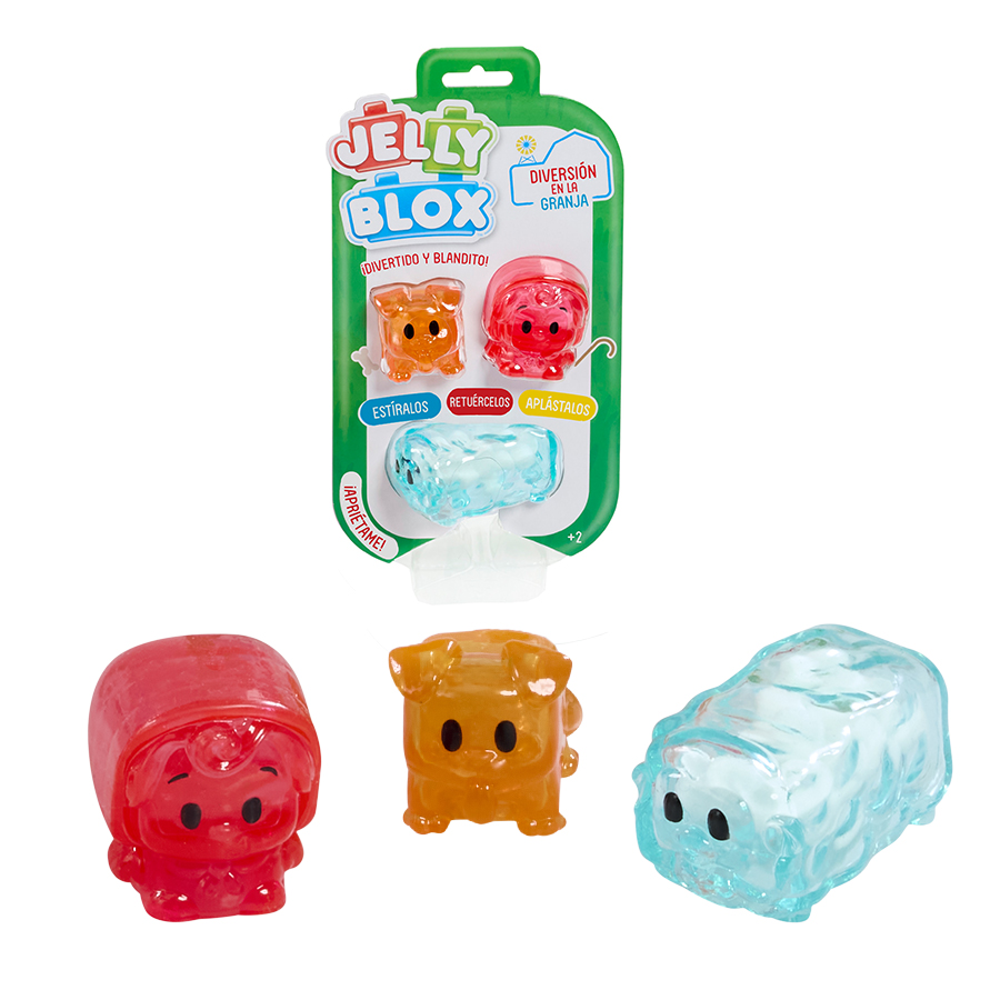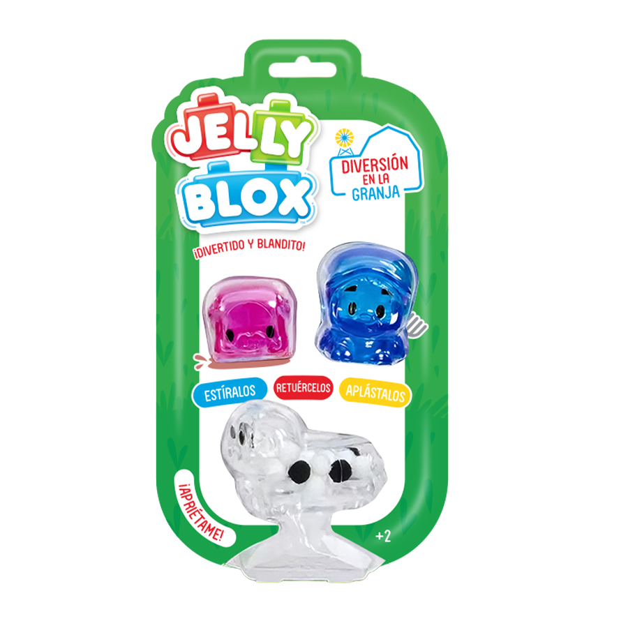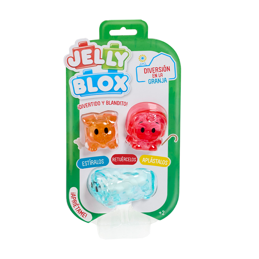 ¡Diversión blandita en la granja! El set Jelly Blox diversión en la granja incluye 3 piezas para disfrutar de infinitas aventuras llenas de creatividad. Cada pack contiene un granjero y dos animales suaves, coloridos y con textura sensorial, ¡son perfectos para estirar, apretar y dejar volar la imaginación! ¡Explora el mundo Jelly Blox con tus nuevos amigos de la granja.