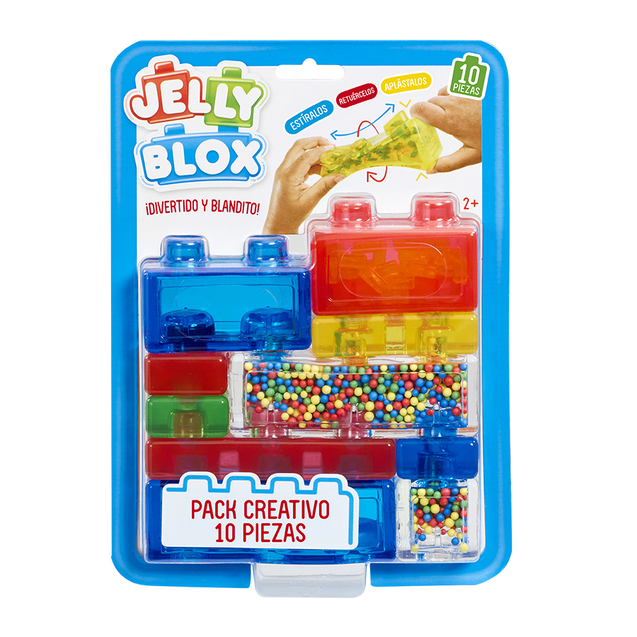 ¡Crea, construye y exprésate sin límites! Con Jelly Blox Pack creativo de 10 piezas, los pequeños constructores disfrutarán de 10 piezas blandas y coloridas que estimulan el tacto y la imaginación. Suaves, elásticas y fáciles de encajar, ¡son perfectas para construir, aplastar y dejar volar la creatividad!