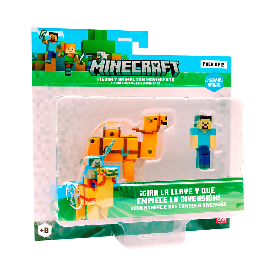 Los héroes de Minecraft cabalgan hacia la aventura! Con Minecraft Wind The Key, podrás coleccionar a Alex, Steve, Noor y Baby Zombie, cada uno montado en su fiel compañero: caballo, cerdo, camello o llama. ¡Dales cuerda y míralos moverse sin parar! Corre, explora y recrea las mejores aventuras del videojuego con estos increíbles personajes en acción.