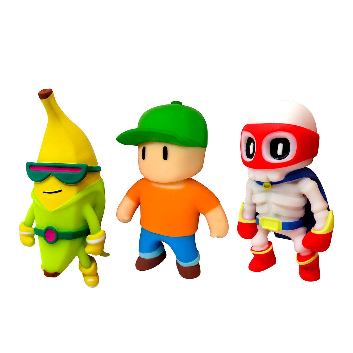 ¡Siente la emoción con el Pack de 3 de Monsterflex de Stumble Guys! Este set incluye a los personajes más icónicos de Stumble Guys: Banana Guy, Mr. Stumble y Dynamitron. ¡Estira, estruja y retuerce tus personajes favoritos!
