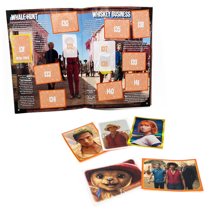 ¡Abre tu álbum y comienza la gran aventura por los mares! Con ONE PIECE – Stickers Cards Álbum sumérgete en el universo de las temporadas 1 y 2 y completa una colección de 200 cromos con diseños especiales, troquelados y holográficos. El álbum te guía por los personajes y momentos clave de la serie, convirtiendo cada página en parte del viaje. Incluye 10 stickers para empezar tu colección desde el primer momento. El imprescindible para todo fan de la tripulación más legendaria.