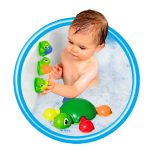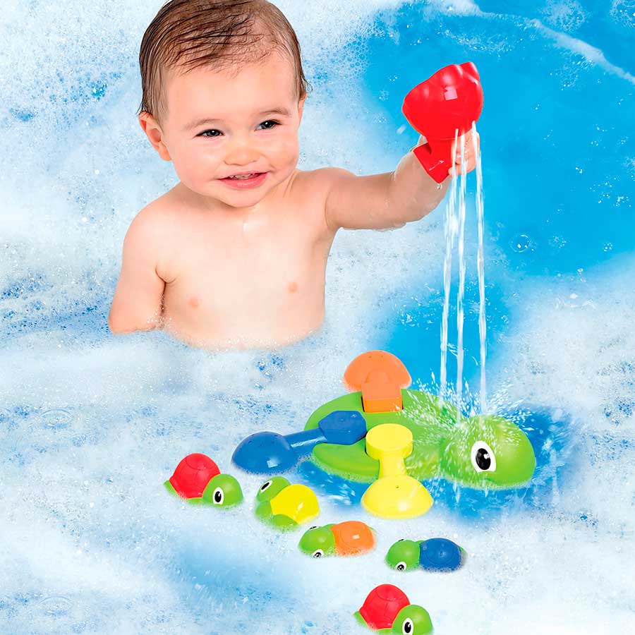La Tortuga mamá tiene 4 tortuguitas adorables. ¡Las tortuguitas se colocan encima de la concha de la tortuga mamá! Ehan un chorro de agua para divertirsión a la hora del baño. Quítale la concha a la tortuga mamá para verle las cuatro patas con los rociadores de colores brillantes. Quítale las patas para echar agua, luego diviértete poniéndolas de nuevoen su lugar.